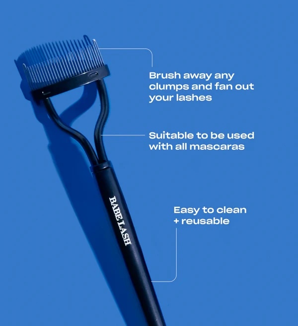 Babe Original Pro Lash Separator is a professional lash comb for separating mascara-coated lashes and reducing clumps in daily or high-volume service settings. Used immediately after mascara while still wet, the metal comb is placed at the base of the lashes, gently wiggled into the lash line, and pulled up and out to create a more fanned, defined lash pattern. The tool can be reused throughout the day and is easily cleaned between clients or uses with an alcohol wipe followed by air-drying, supporting hygienic workflows in spa, salon, and clinic environments. Read more