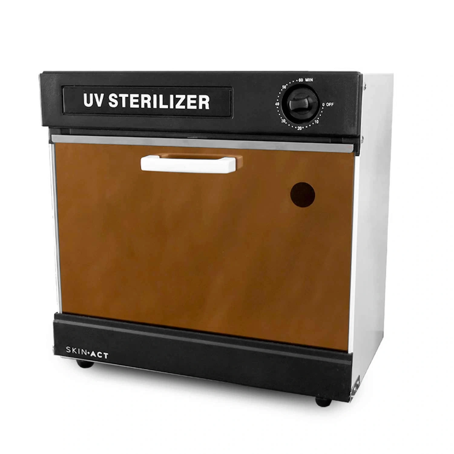 SkinAct UV Sterilizer and Sanitizer Cabinet with Timer supports consistent sanitation workflows in spas, salons, and clinics. The compact countertop cabinet measures 16 in H x 10 in D x 16 in L overall, with an 8 in H x 9 in D x 15 in L interior for organized placement of tools on two fixed shelves. Dual UV lights at the top and bottom work with reflective interior walls to increase surface exposure during each cycle. A built-in timer standardizes processing time across staff. Unit operates at 120 V, 60 Hz, 20 W and carries a 1-year warranty for business use. Read more